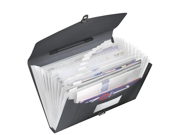 Harmoniková taška, A4, PP, 12 priehradiek, ESSELTE "Vivida", čierna
