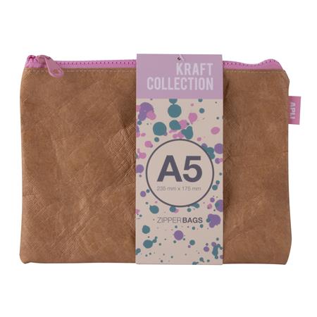 Puzdro na drobnosti, na zips, textúra koženého efektu, plast, A5, APLI "Kraft", zips rôznych farieb