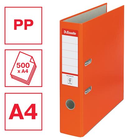 Pákový šanón, 75 mm, A4, PP/kartón, ochranné spodné kovanie, ESSELTE "Economy", oranžový
