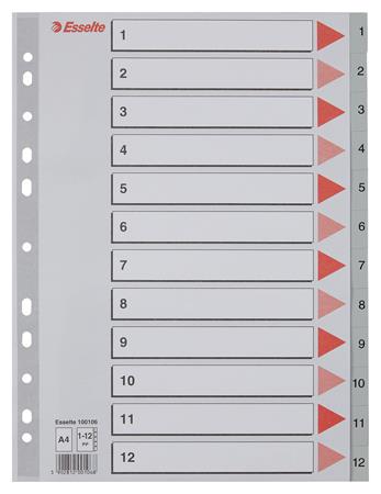 Register, plastový, A4, 1-12, ESSELTE, sivý