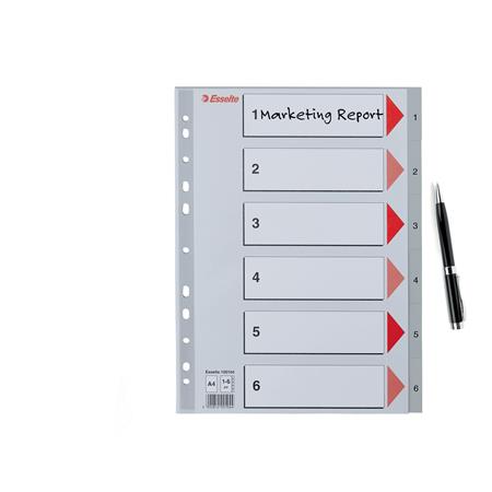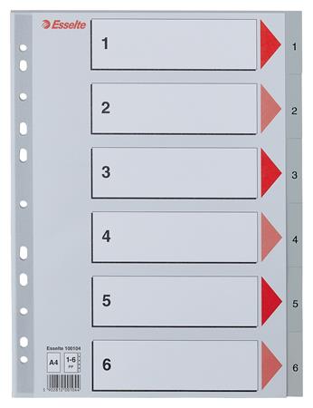 Register, plastový, A4, 1-6, ESSELTE, sivá