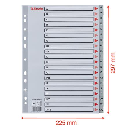Register, plastový, A4, A-Z, ESSELTE, sivý