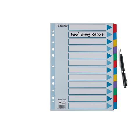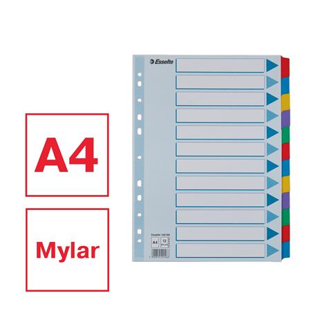 Register, laminovaný kartón, A4, 12 részes, ESSELTE "Mylar", farebný