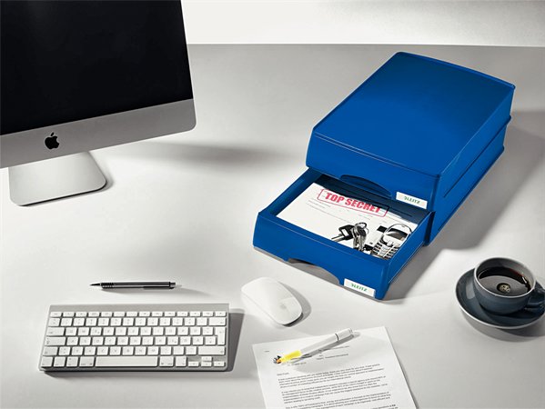 Box na dokumenty, plastový, 1 zásuvkový, LEITZ "Plus", modrý