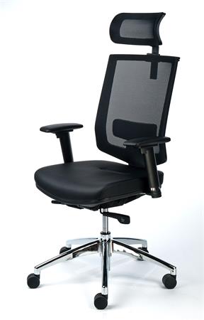 Exkluzívna kancelárska stolička s opierkou hlavy, čierna koža, sieťové operadlo,hliníkový podstavec, MAYAH "Maxy"