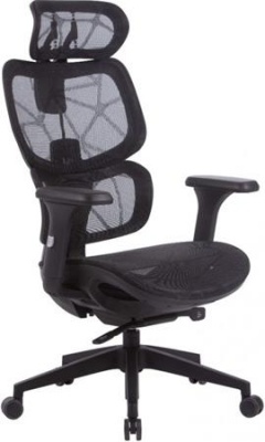 Kancelárska otočná stolička, sieťovaný sedák a operadlo, čierny plastový krížový podstavec, "Humantech", čierna