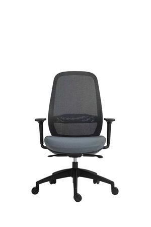 Kancelárska stolička s pohodlným sedadlom dizajnové prevedenie s hrubým, tvarovaným polstrovaním sedadla pre vyšší komfort pri sedení výškové nastavenie pomocou plynového piestu priedušné sieťované operadlo s nastaviteľnou bedrovou opierkou synchrónna mechanika nastaviteľná hĺbka sedadla nastaviteľná výška opierok nosnosť: 130 kg Poťah: sedadlo: protioderová látka operadlo: napnutá sieťovaná tkanina