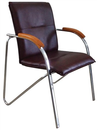 Konferenčná stolička, koženka, chrómová oceľ, opierka rúk: čerešňa, "Sabina", čierna