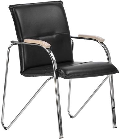 Konferenčná stolička, koženka, chrómovaná konštrukcia, lakťová opierka z buku, "Sabina", čierna