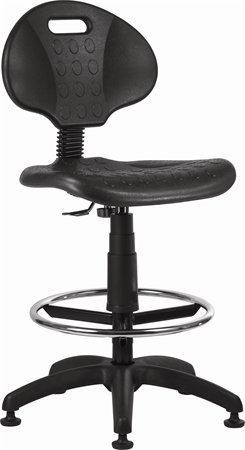 Pracovná stolička, s operadlom, plastové sedadlo, s držiakom na nohy, s klzákmi, "1290", čierna