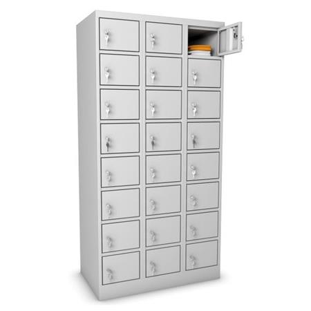 Bezpečnostná kovová skrinka, 24 priehradiek, sivá
