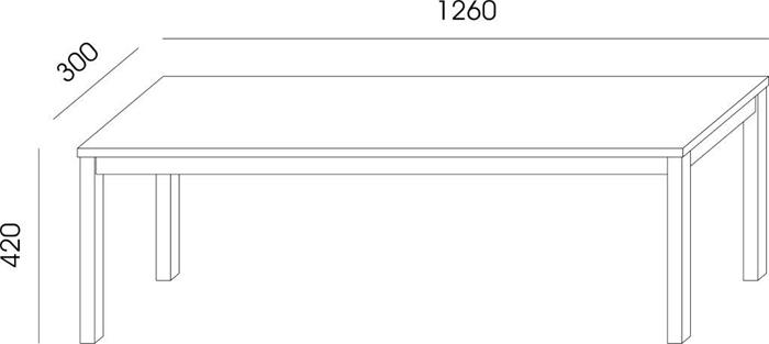 Rozmery: šírka 126 cm, hĺbka 30 cm, výška 42 cm