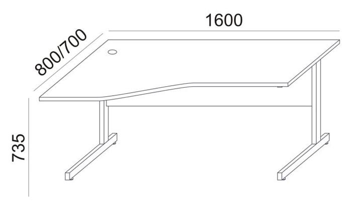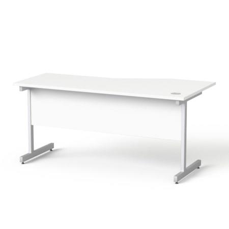 Písací stôl, oblúkový, ľavý, so sivými kovovými nohami, 160 × 80 cm, MAYAH „Freedom SV-30“, biela