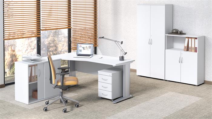 Hlavná stránkaNábytokKancelársky nábytokSúprava nábytkuPísací stôl, oblúkový, ľavý, so sivými kovovými nohami, 160 × 80 cm, MAYAH „Freedom SV-30“, biela