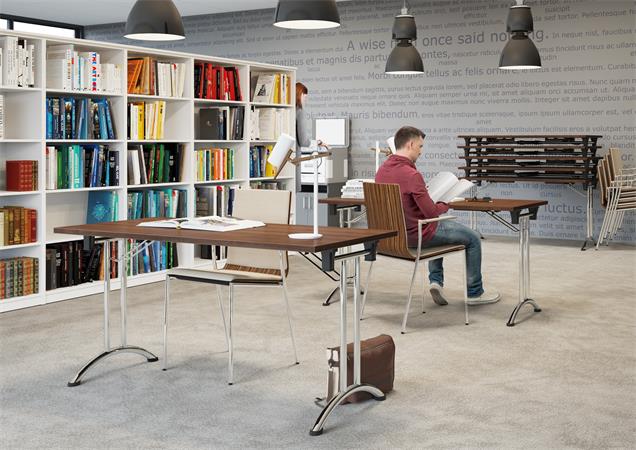 skladací konferenčný stôl, skladacie chrómové nohy