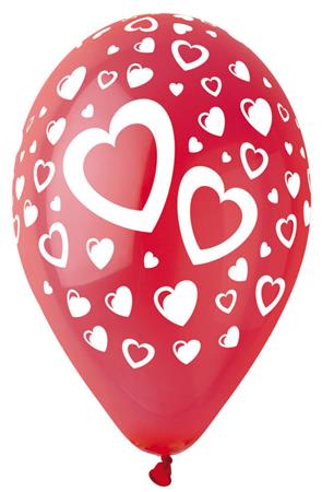 Balón, 30 cm, červený, srdiečka