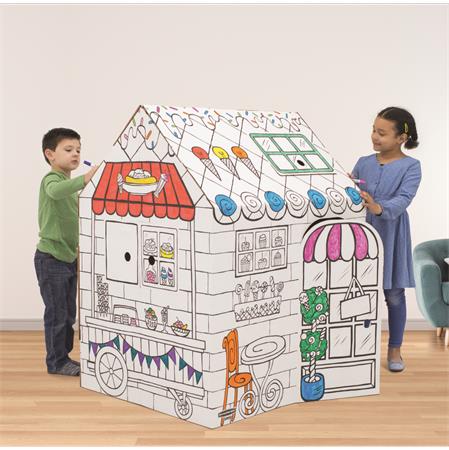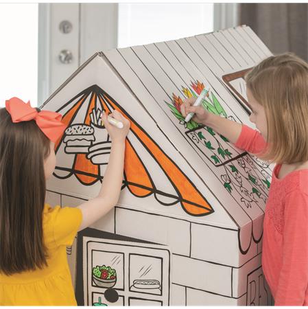 Kartónový domček, vyfarbiteľný, FELLOWES "BANKERS BOX® Playhouse", maškrty/jedlá, mix vzorov