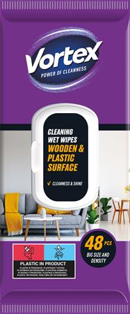 Vlhčené utierky, na drevené a plastové povrchy, 48 ks, VORTEX
