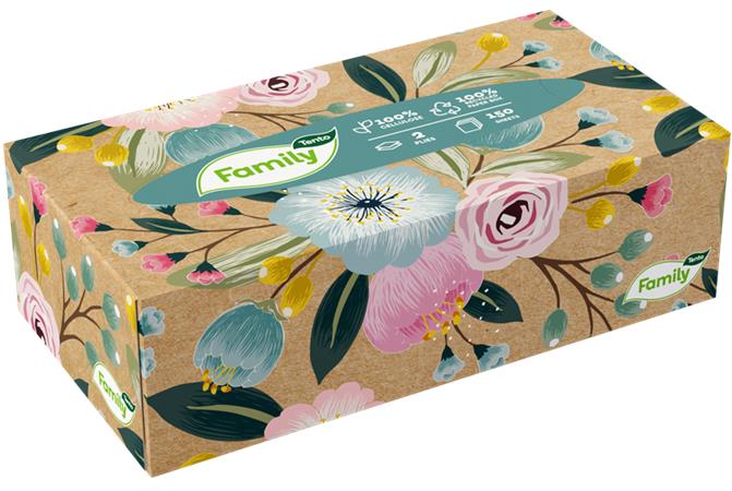 Produktový rad Tento Family odporúčame tým, ktorí hľadajú jednoduché, no zároveň užitočné hygienické riešenia pre svoj domov. Kozmetické obrúsky Tento Family sú balené v rôznych baleniach, v pôvabne navrhnutých škatuľkách z recyklovaného papiera. Boxy sú navrhnuté tak, aby ste ich mohli umiestniť kdekoľvek vo vašej domácnosti, na stole aj na kuchynskej linke. - počet hárkov: 150 utierok/krabica - zmiešané štyri rôzne vzory, vzor nie je možné vybrať