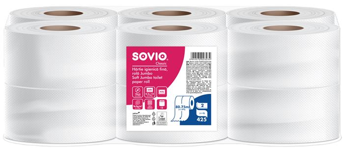 Sovio toaletný papier vďaka veľkému baleniu odporúčame do priestorov so strednou a vysokou návštevnosťou, ako sú HoReCa, fabriky, nákupné centrá, kancelárie, kaderníctva/kozmetické salóny, lekárske ordinácie a kliniky, dopravné zariadenia a verejné inštitúcie. Na jednom kotúči je omnoho viac papiera než na bežných rolkách, takže je potrebné ich vymieňať menej často.