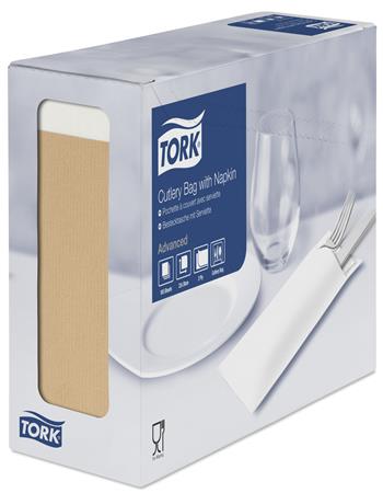 Kapsičky na príbory, 2-vrstvové, s bielou servítkou, Advanced, TORK, prírodná