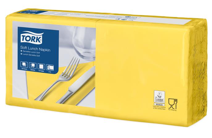 Servítky, 1/4 ohyb, 3-vrstvové, 32,5x32,8 cm, Advanced, TORK "Soft Lunch", žltá