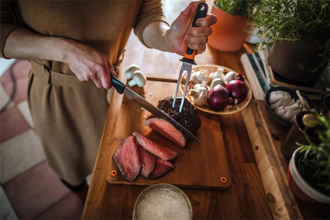 Nôž na porciovanie Fiskars Functional Form ™ má dlhú čepeľ s jemným ostrím a je navrhnutý na pohodlné používanie a ľahkú údržbu