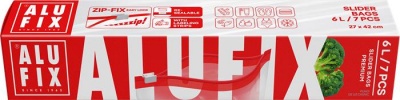 ALUFIX ZIP-FIX zipsové vrecká na potraviny sú praktické a opakovane uzatvárateľné tašky, ktoré sú ideálne na skladovanie potravín. Produktová rada Zipp Fix je dostupná v rôznych veľkostiach.