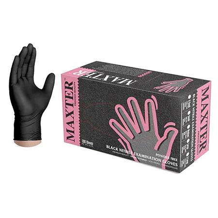 Materiál: nitril (3,6 g) AQL: 1,5. Vlastnosti: prémiová kvalita, jednorazové, nesterilné, nepudrované, celoplošne mikrozdrsnené, zrolovaná stopka, dĺžka: 240mm, možno nosiť na oboch rukách. Farba: čierna Veľkosť: S, M, L, XL Balenie: 100 ks/krabica, 10 krabíc/kartón