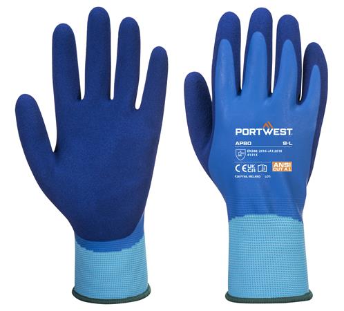 Ochranné rukavice, latexové, latexová pena, máčaná dlaň, veľ. L, "Liquid Pro", modrá