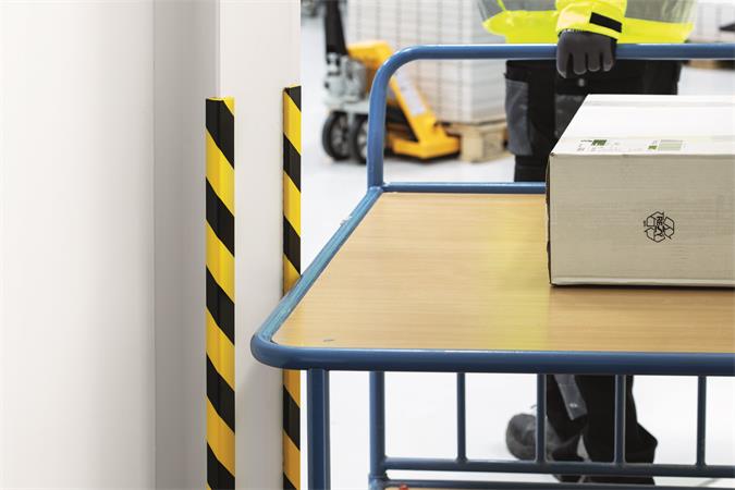 Samolepiaci, flexibilný profil na ochranu hrán z polyuretánovej peny - pre vnútorné použitie - ideálny na pripevnenie na police, hrany, T-nosníky atď. vo výrobe, možno použiť v dopravných oddeleniach a skladoch, pivniciach, schodiskách a garážach -označuje nebezpečné miesta, zmierňuje zranenia spôsobené kolíziami a zabraňuje poškodeniu vozidiel a prepravných vozíkov -profily je možné skrátiť na požadovanú dĺžku ostrým nožom - výrobok má farbu ASR A1 .3 sú použité farby, ktoré zodpovedajú farbám RAL 1004/9003 (indikátor žltý/indikátor čierny) - trieda požiarnej odolnosti E podľa normy DIN EN 13501-1 - tepelná odolnosť od -30°C do + 70°C - dĺžka profilu 1 m -šírka výrezu: 8 mm