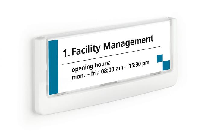 Hlavná stránkaPrevádzka a údržbaPrevádzka a údržbaInformačné znakyInformačná tabuľka, 149 x 52,5 mm, DURABLE "CLICK SIGN", biela