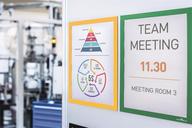 Magneticky priľnavý informačný rámik na informácie vo formáte A4 - kvalitná a profesionálna prezentácia informácií - pomocou magnetického rámčeka je možné rýchlo vkladať a vymieňať dokumenty - jednoduchá aplikácia na kovové povrchy, napr. na tabule, vitríny, priehradky, ale aj štíhle kocky a stroje vo výrobe - oblasti použitia: na dokumenty vo formáte A4, napr. pre súbory strojov, indexové čísla závodu a informácie o zamestnancoch -možno použiť vo formáte na výšku a na šírku -na www.duraprint.de je k dispozícii množstvo vopred pripravených šablón -vonkajšia veľkosť: 236 x 323 mm