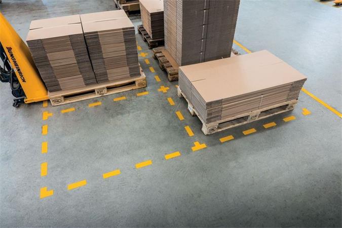 Použitie: na označenie vnútorných podlahových povrchov, nebezpečných oblastí, skladovacích priestorov, komunikačných ciest atď.