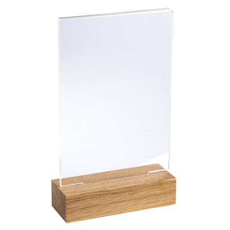 Ideálny na vystavenie fotografií, informácií, jedálnych lístkov či ponúk na stole. -vyrobený z kvalitného akrylu  zvislá (stojatá) orientácia -priehľadný -podstavec z dreva -obojstranný -rozmery: 105 x 50 x 180 mm -odolný voči UV žiareniu