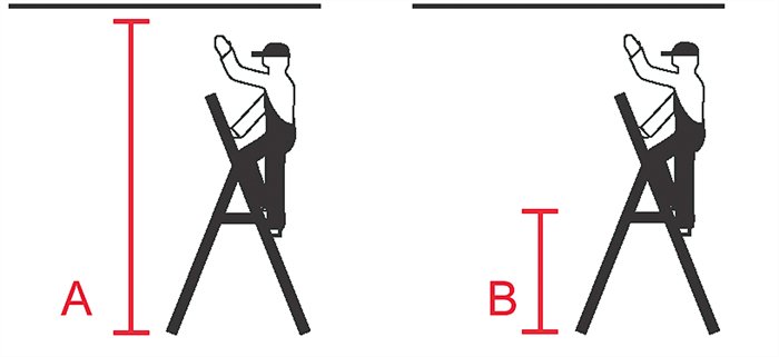 prístupný z jednej strany, s plošinou na vrchu, široká bezpečnostná plošina s vysokým držiakom, veľký držiak na vrchu rebríka na odkladanie nástrojov, 80 mm široké protišmykové priečky, nosnosť: 150 kg