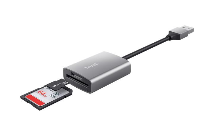 Čítačka kariet, pre SD + MicroSD kartu, USB 3.2 gen1, "TRUST Dalyx", strieborná
