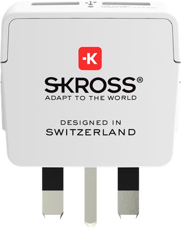 Skross UK plug konvertor a USB nabíjačka v jednom pre cestujúcich z Európy do Spojeného kráľovstva. 2 x USB vstup umožňuje súčasne nabíjať smartfón a tablet, pričom ho možno použiť aj s uzemneným zariadením (notebook, fén). -uzemnený -vstupný konektor krajiny: Európa -výstupný konektor: Veľká Británia -vstupné napätie: 100V - 250V -max. prúd: 13A -výkon: 100V -700W/250V - 1750W -USB výstup: 5V/2400mA -rozmery (s balením): 105 x 175 x 55 mm (Š x V x H) -hmotnosť: 0,113 kg