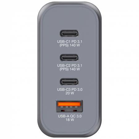 Podporuje súčasné nabíjanie až 4 zariadení (s maximálnym výkonom 140 W). So svojimi skladacími americkými stopkami a vymeniteľnými zástrčkami pre EÚ a Spojené kráľovstvo je dokonalým spoločníkom na cesty. -Galium Nitride (GaN) technológia: poskytuje vysoký výkon, rýchle a efektívne nabíjanie a produkuje menej tepla -2 x USB-C® PD 3.0 až 140 W -1 x USB-C® PD 3.0 až 20 W -1 x USB -A QC 3.0 až 18 W - super rýchle nabíjanie pomocou USB Power Delivery 3.0, PPS a Quick Charge 3.0 - technológia programovateľného napájania (PPS) poskytuje správne množstvo energie potrebnej pre ideálne nabíjanie - vyrobené z vysoko kvalitného plameňa -odolné materiály - nadprúdová ochrana -prepäťová ochrana -ochrana proti skratu -ochrana proti prehriatiu -materiál: Plast Teleso: PC Ohňovzdorný materiál -rozmery: 76,5 x 67,7 x 31,3 mm (Š x V x H) - hmotnosť: 270 g - bez plastov balenie - obsah balenia: GaN nabíjačka EU adaptér UK adaptér Stručný návod na spustenie