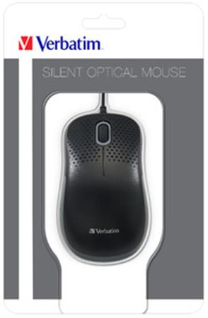 Myš, drôtová, optická, normálna veľkosť, USB, VERBATIM "Silent", čierna
