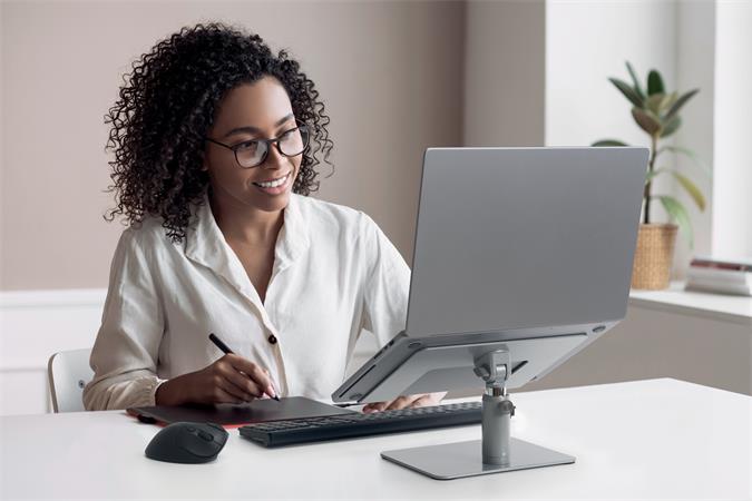 Univerzálny stolný stojan na notebook vám umožní umiestniť váš laptop do pohodlnej výšky a zároveň znížiť neporiadok na pracovnej ploche. - -pevná konštrukcia: vyrobená zo silnej ocele a hliníka -ergonomická: umožňuje používateľom zdvihnúť obrazovku do úrovne očí pre optimálny uhol pohľadu -poskytuje variabilné nastavenie výšky/sklonu pre optimálne držanie tela. (výška medzi 15 - 20 cm, uhol sklonu je možné nastaviť medzi 0°-45°) -otvorený ventilačný dizajn: podporuje cirkuláciu vzduchu, zlepšuje výkon notebooku a výdrž batérie -Under-Base Storage: poskytuje priestor na uloženie externých periférií v organizované pre pracovné prostredie - protišmykové silikónové podložky: chránia notebook pred poškriabaním a udržujú zariadenie na mieste pri práci. Bezpečnostná lišta zabraňuje skĺznutiu zariadení - max. Pre 16" notebook - nosnosť: max. 8 kg