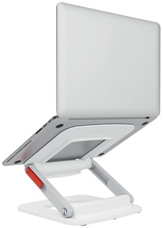 Integrované uško zaisťuje bezpečný a stabilný úchop, sklopenie uško na bezpečné použitie v horizontálnej polohe notebooku alebo pri uložení naplocho, gumové nožičky bránia kĺzaniu stojana po stole