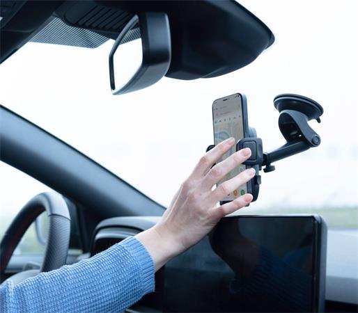 Držiak telefónu do auta, ktorý je možné uchytiť k ventilácii alebo k čelnému sklu.