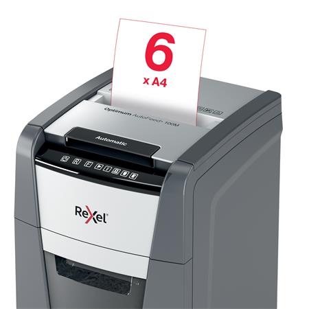 Skartovací stroj, mikrokonfety, 100 listov, REXEL "Optimum AutoFeed+ 100M"