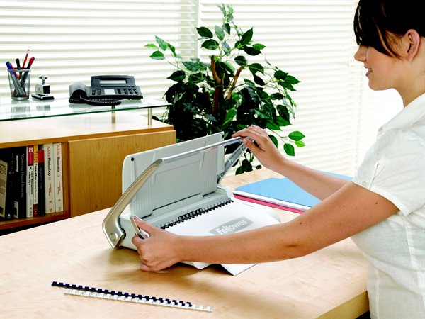 Hlavná stránkaTechnologické výrobkyKancelárska technikaŠpirálová väzbaViazací stroj, pre plastovú väzbu, manuálny, 150 listov, FELLOWES "Star+ 150"