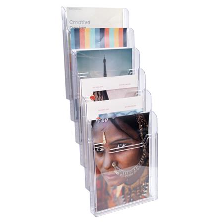 Držiak na katalógy, nástenný, A4, stojatý, 6 priehradiek, EXACOMPTA "Office", priehľadný