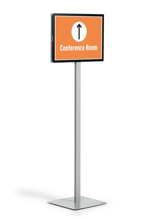 INFO STAND BASIC podlahový stojan je čitateľný z oboch strán, čo ho robí ideálnym na prezentáciu informácií aj ako orientačný a navigačný systém.