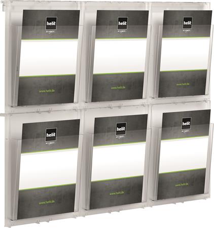 Stojan na katalógy, nástenný, A4, 6 priečinkov, HELIT "Placativ", priehľadný