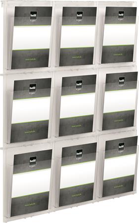 Stojan na katalógy, nástenný, A4, 9 priečinkov, HELIT "Placativ", priehľadný