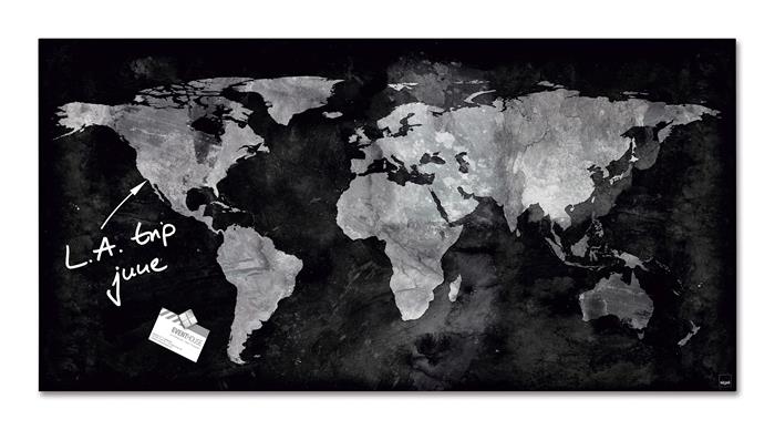 Magnetická sklenená tabuľa, Mapa sveta, 46x91 cm, SIGEL "Artverum® ", čierna